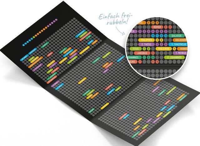 Jeder farbige Punkt steht für ein schon gelesenes Kapitel. Einfach freirubbeln!